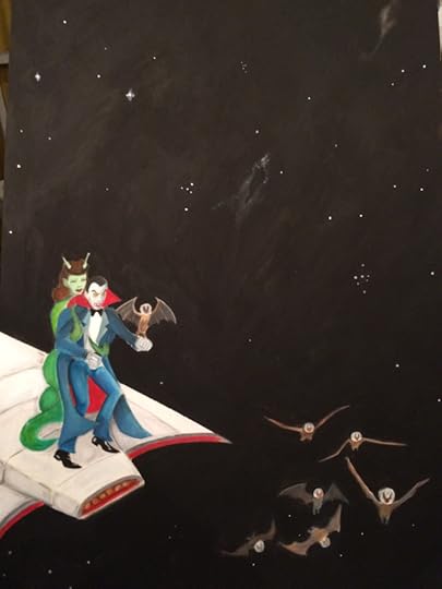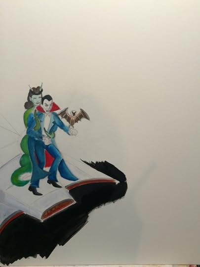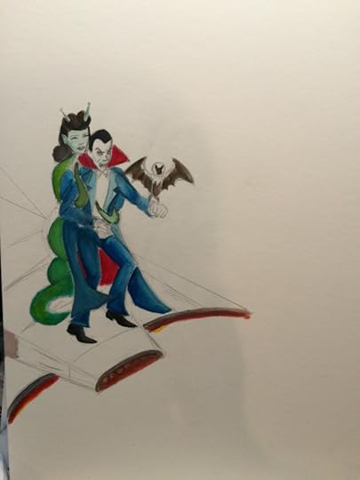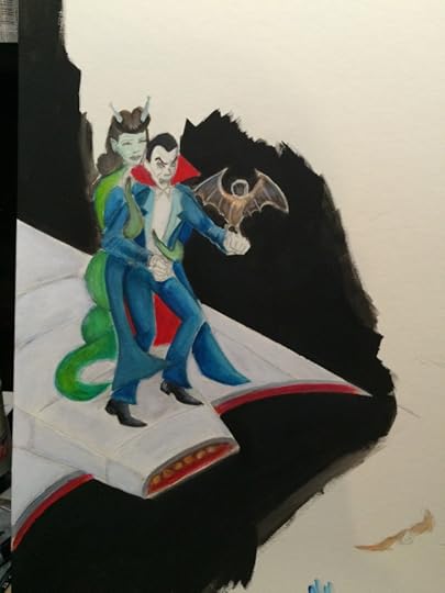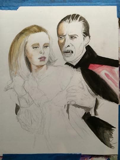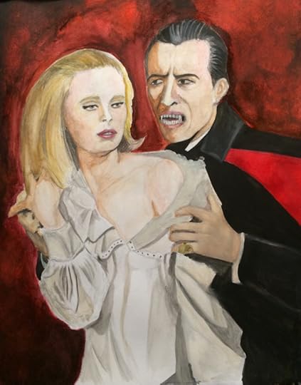 I love Christopher Lee’ s version of Dracula. He was the first Dracula I was exposed to on TV. Here’s my watercolor painting of him with Veronica Carlson.