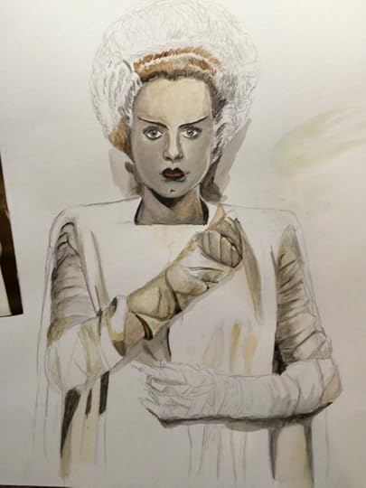 A little while back, I drew Elsa Lanchester as The Bride of Frankenstein. I finally had the chance to paint it!