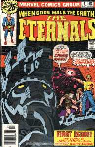 Best of all, Kirby gave us the Celestials. These “Space Gods” were inspired by the Incan legends and carvings of space travellers of legend. They were towering titans of unimaginable power who had visited the earth three times before. The first time they had messed with hominid DNA to create the triple race of Human, Eternal, and Deviant. The second time they came to destroy the empire the Deviants had created, effectively freeing humanity from enslavement by their Deviant masters and sinking the lost continent of Lemuria. In the first issue of THE ETERNALS (published in 1976), these Celestials return to earth. The mission of this Fourth Host? To monitor mankind for 50 years and then decide if it deserves to exist or be utterly destroyed!