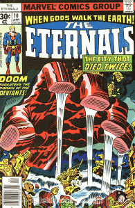 This series was exceptional for many reasons, and Kirby was once again breaking the “rules” of comics. The story rotated between a huge cast of Eternals and Deviants and Humans and Space Gods; there was no true central character. The stories were not meant to be part of the existing Marvel Universe, but eventually they were retconned into it. The Deviants weren’t single-minded villains, but complex beings with the potential to be as deep and heroic as Eternals or Deviants.