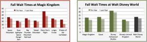 Wait times are up at Magic Kingdom this Fall and we are refreshing the Crowd Calendar to reflect the new trend for the rest of 2014. In fact, Fall wait times are up across all parks compared to last year. Also, we’ve completed a complete review of school schedules and holidays, park schedules and travel trends for 2015 so you will see some updates throughout future dates as well. Despite the increases this Fall our crowd level numbers have gone down for much of 2015. This is because our predictions tend to be conservative the further into the future you go. Now that 2014 is coming to an end, we can be a little more definite about our crowd projections next year.