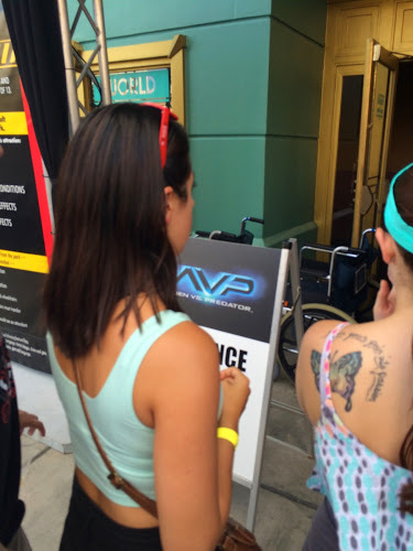 When released from the holding area at approximately 5:45 p.m., head directly to Alien vs Predator (enter near the Twister facade)