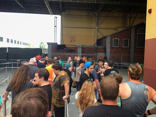 There was no holdup due to MagicBand scanning when I visited; these folks were just waiting for their time window to arrive.