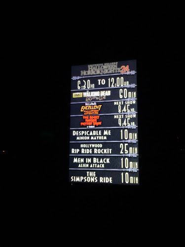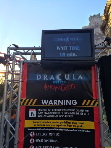 Neither Dracula Untold nor The Walking Dead open until 6:30 p.m., at which point the former posted a 10 minute wait, with the later already over an hour. From Dusk Til Dawn was operating before 6:30 p.m., also with a 10 minute posted wait.