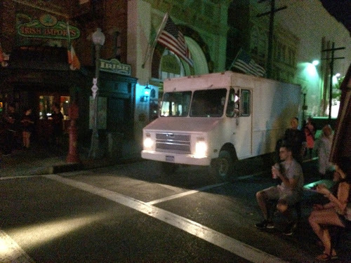 Wait outside or inside Finnegan’s Bar and Restaurant (reservations are usually fully booked for the event).