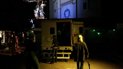 Proceed to the New York area across from the Transformers ride, where you will show your HHN ticket and receive a wristband.