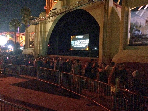 Park and arrive at Universal with ticket in hand no later than 5:30 p.m., and pass through the security checkpoint (using the “no bags” line to the left if possible).