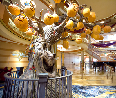 2. Gorgeous Decorations – The ships are gorgeous any day of the year, but they are really done up for the holidays. For the Halloween sailings, there are four different Halloween trees decorated with pumpkins. Actually, they usually start off with just leaves and by the end of your sailing it’s covered in pumpkins. And don’t miss the portholes on deck 4, they have adorable Jack-o-lantern faces. During the Very Merrytime sailings, there will be Christmas trees everywhere! In the restaurants, in the atrium, in the terminal, even on Castaway Cay! There is also a giant gingerbread house in the lobby which they start constructing in early November and finish around the last week of November.