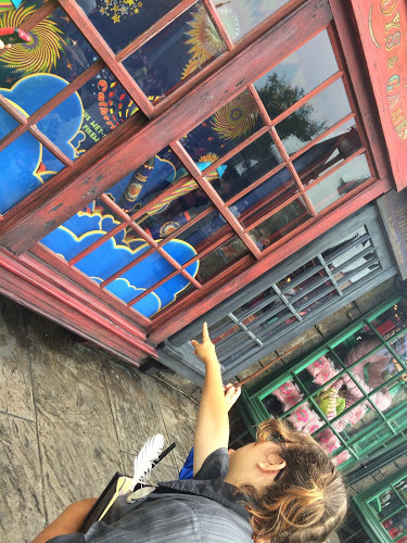 [For some Easter eggs from the attraction designers -- including the first of several tributes to Jaws, the original occupant of this area -- inspect the record albums in the music store window.]