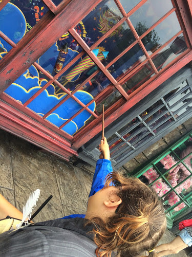 Intersecting Diagon Alley near the Leaky Cauldron is Knockturn Alley, a labyrinth of twisting passageways where the Harry Potter bad guys hang out. A covered walk-through area with a projected “sky” creating perpetual night, it features spooky special effects in the faux shop windows (don’t miss the creeping tattoos and crawling spiders), and Borgin and Burkes, which sells objects from the dark side of magic to discover — just watch out for the mummified hand!