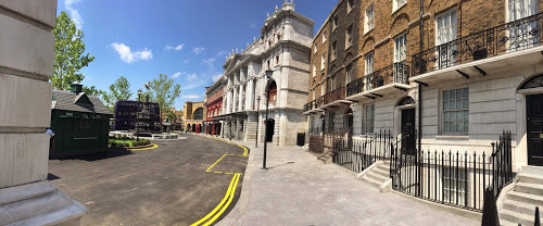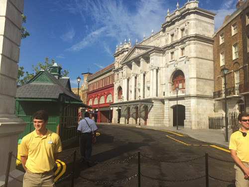 As Laurel Stewart shared in a newsflash a short time ago, the construction walls around The Wizarding World of Harry Potter — Diagon Alley came down late last night, unveiling the new London facades without walls for the first time to this morning’s guests (including myself). Without further ado, we present a long-awaited PotterWatch milestone, without our first full look at the expansion with the London Waterfront walls removed.
