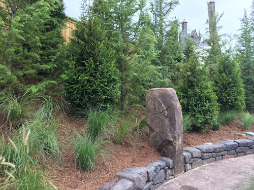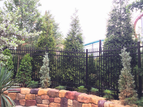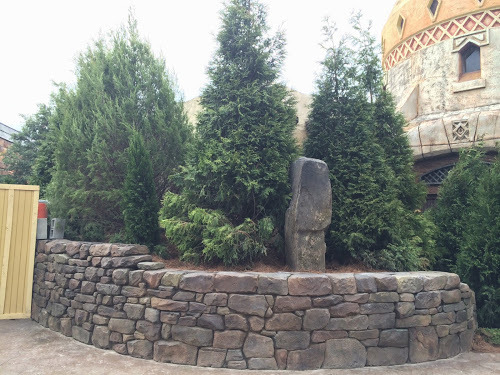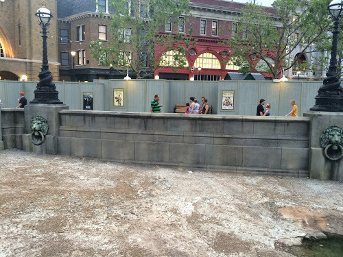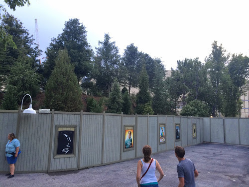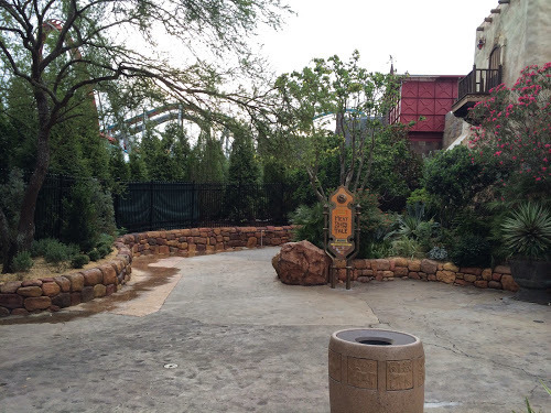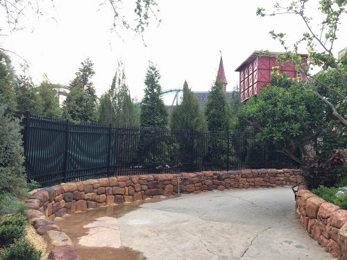 The rockwork and trees work well to beautify this brief walkway, and is much better than the tacky carnival games that once stood here. But the plain wooden fence behind the trees still seems like a bit of a compromise.