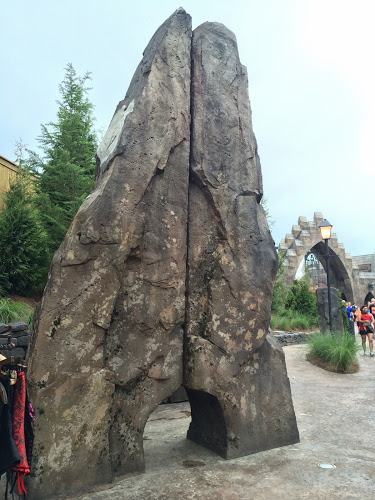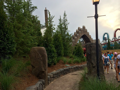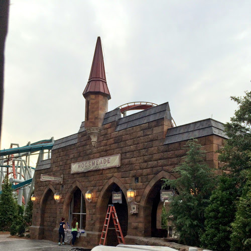 Over in Islands of Adventure, construction walls came down on one side of the border between The Lost Continent and the Wizarding World, giving us our first look at the newly landscaped Hogsmeade transition across from the Hogwarts Express train station.