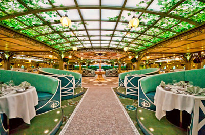 6. Rotational Dining – Disney pioneered the concept of rotational dining. Instead of one large dining room where guests eat every night, there are three dining rooms that guests rotate through during the cruise. The ingenious thing is that your three servers move with you. Your servers, whom you will probably love and want to bring home with you after your cruise is over, travel to each dining room with you. This is another area where other cruise lines have realized the appeal of this concept and some are starting to implement rotational dining on their newer ships.