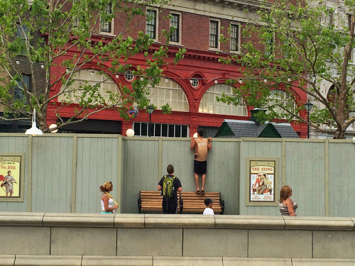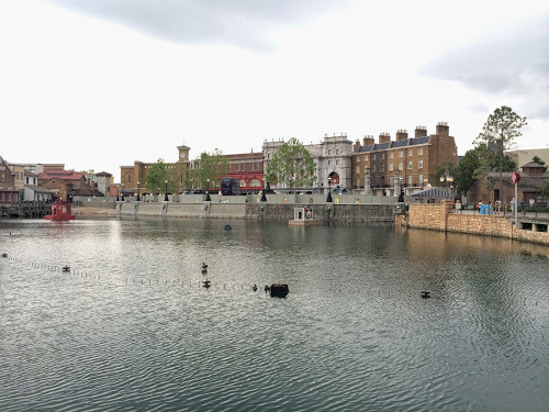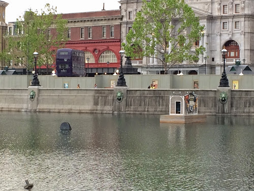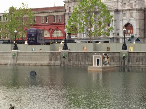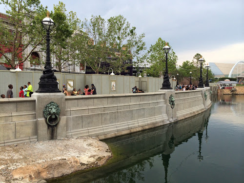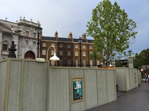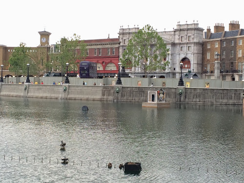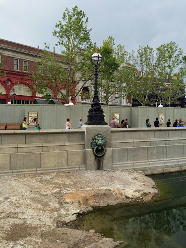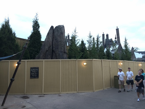 The Gringotts dragon was quickly covered in scaffolding, but you can still see his head and tail peeking out from the opposite side the lagoon.