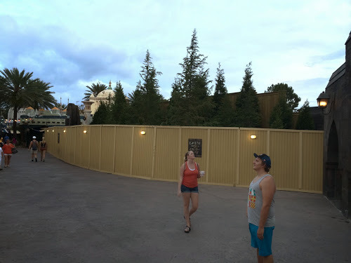 Before we exit the area, note that the wooded berm behind Diagon Alley looks nearly complete.