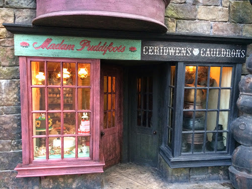 Nearby, the facade of the cauldron shop next to the tea shop received new signage not long ago: