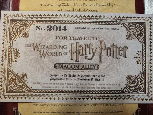 Breaking news! A friendly FedEx owl from Universal Orlando dropped off a parcel this morning containing an invitation to the Wizarding World of Harry Potter — Diagon Alley media preview, scheduled for June 17-20. Here’s a look at the lovely package, which included tickets for the Hogwarts Express and a “gold” bar from Gringotts bank: