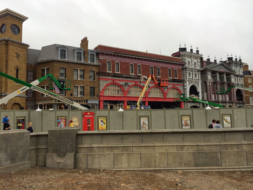 The shops of Diagon Alley can be glimpsed through the Leicester Square entrance.