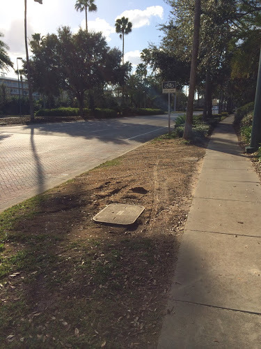 Landscaping appears to be cleared in order to prepare for bridge construction.