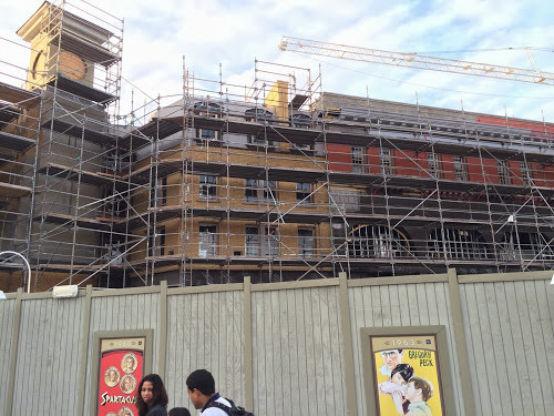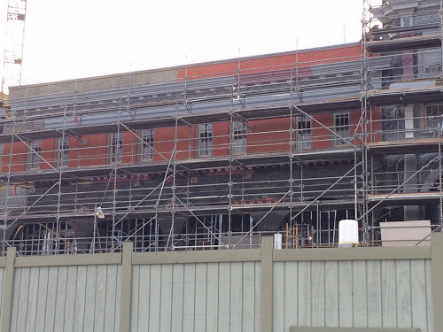 While progress slowed somewhat over the holiday week, here is a complete overview at the Diagon Alley project, taken on December 26th, 2013. For variety’s sake, this time we’ll start from the World Expo end of the construction: