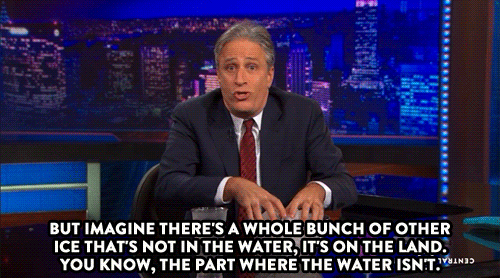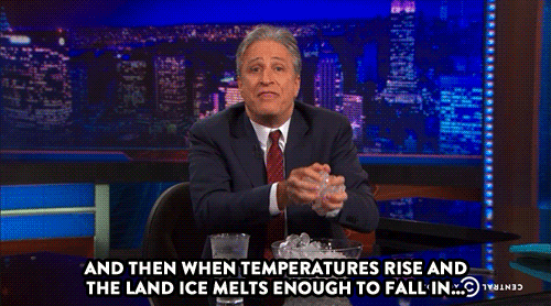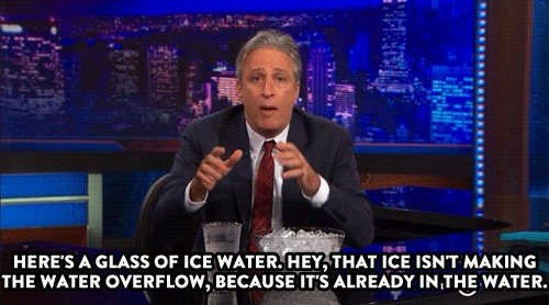 John is totally right here, but still completely wrong, scientifically speaking. There is only so much water on Earth and whether it’s frozen or melted matters not one whit. There was a time in Earth’s past when all water was melted and not one cube of ice was to be found anywhere on the planet. Palm trees grew near the Arctic Circle, fer Christ sake.