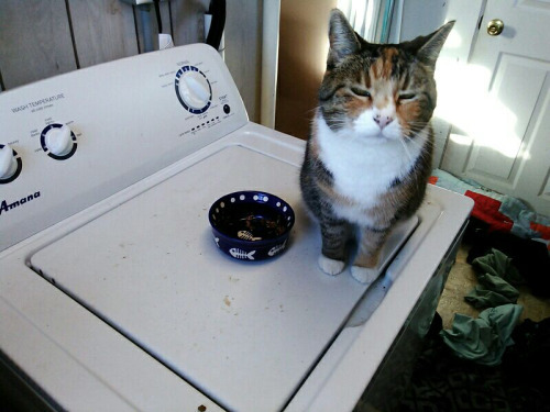 Here’s my cat, Boomerang. We named her that because she was a stray and kept coming back. Feeding her may have had something to do with it LOL. Had her for almost a decade now. She eats on the washer so the dogs won’t fuck with her. She got in a fight recently and has scratches on her nose.