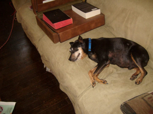 Here is a picture of my dog Duke who needs a sweater. You can kind of see how big he is in relation to my briefcase. The briefcase has two Bibles on it, but they aren’t his. He worships the old Germanic gods, especially Woden.
