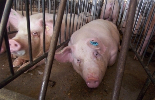 The group said its undercover operatives "found workers cutting piglets testicles and tails off with no painkiller, injured piglets with their legs duct taped to their bodies, gestation crates overflowing with feces and urine, and employees hitting pigs' genitals to force them to move from one crate to another."