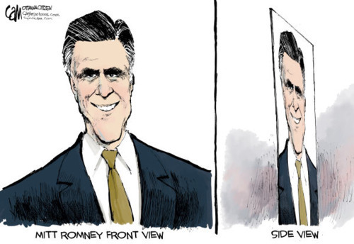 Romney is almost perfect for this role, having been designed and built by generic rich white dude engineers at the generic rich white dude factory in China. He says whatever you want to hear, revealing impeccable wiring and programming worthy of a sleek Steve Jobs gizmo.