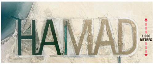 A billionaire Sheikh of Abu Dhabi, Hamad Bin Hamdan Al Nahyan, has carved his name into the desert so big it can be seen from outer space. "Hamad" is two miles long and well over 3,000 feet high. The first two letters, H and A, have actually turned into waterways.