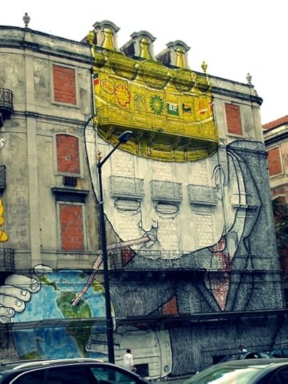 More street art by Blu. This was in Los Angeles, in America, and was whitewashed 24 hours later. We have free speech in America, but only if we say things the authorities allow us to say. More info.