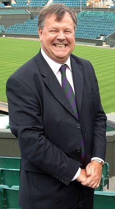 Chief Executive of Wimbledon, Ian Ritchie, is seen here so happy about the grunt and squeal reduction device employed by the BBC he could just shit.