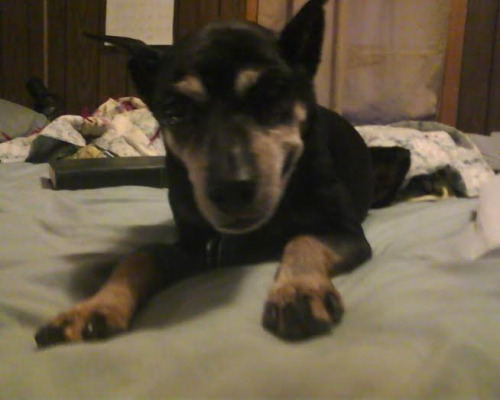 This is my dog Duke. He’s a minpin, a miniature pinscher, very old.