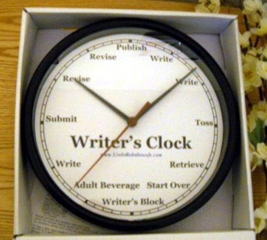 I also have a thanks going out to Linda Rohrbrough, a fellow agency-mate who makes wonderful writer clocks. I met her at the conference and she kindly sent me one.