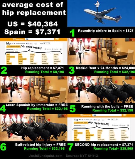 It would be cheaper to fly to Spain, get a hip replacement, live there for two years, get a second hip replacement, and fly home than it would be to get one hip replaced in the United States.