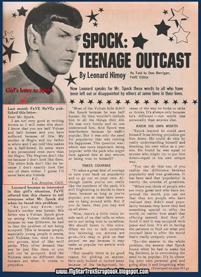 "…While the William Shatner era of Star Trek isn’t exactly the first thing that springs to mind as a predecessor of the “It Gets Better” anti-bullying movement, Buzzfeed’s got an excerpt from the advice pages of a 1968 teen magazine called Fave displays Leonard Nimoy’s sensitivity to the plight of one particular young woman. What would Spock do? she asks. And damn if he doesn’t answer her perfectly…”