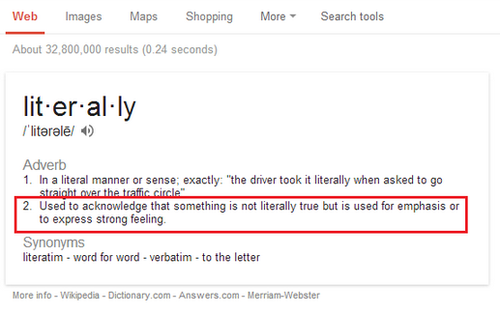 The changing of the definition of “literally” is literally not a problem. It’s what’s behind the objections that I’m literally soooo mad about, oh my god.