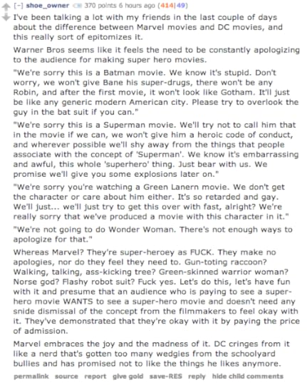 Something rings terrifyingly true about this. I wonder, is this why I’ve done so much more work for Marvel than DC?…