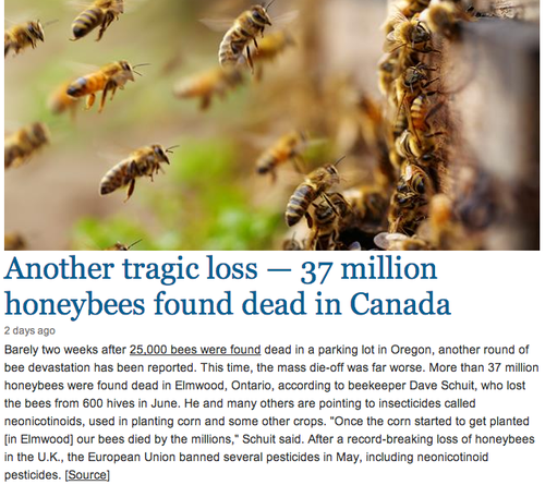 Get excited, motherfuckers. Without bees, we will die off. Bayer and Monsanto continue to produce the chemicals that have been proven to kill them, and the government has their backs. Bees pollinate 30% of our food in the US and we are passing legislation to PROTECT the scumbags responsible for killing them.