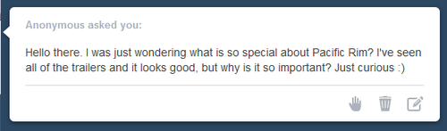 I guess it does seem a little silly to be all “People need to see this movie!!" like it’s an ~important cause~ or a small indie project or whatever. Yes, it’s a blockbuster movie. But I’m getting the impression that people are judging it inaccurately, mostly by comparing it to other blockbuster movies. For example, the vast quantity of people I’ve seen saying, “This looks like a ripoff of Transformers". Nothing could be further from the truth!