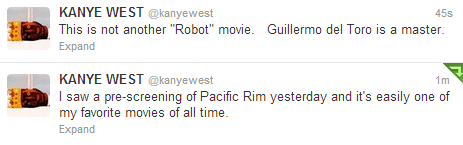 So yeah, I haven’t seen Pacific Rim yet, but I’m pretty damn sure it’s going to be smarter and more entertaining than every one of the major blockbuster movies that came out this summer. And if you don’t feel like trusting me, trust Kanye: