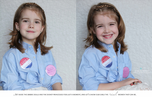 “So my amazing daughter, Emma, turned 5 last month, and I had been searching everywhere for new-creative inspiration for her 5yr pictures. I noticed quite a pattern of so many young girls dressing up as beautiful Disney Princesses, no matter where I looked 95% of the “ideas” were the “How to’s” of how to dress your little girl like a Disney Princess…We chose 5 women (five amazing and strong women), as it was her 5th birthday but there are thousands of unbelievable women (and girls) who have beat the odds and fought (and still fight) for their equal rights all over the world”