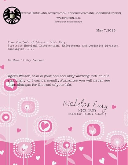 Agent Wilson, this is your one and only warning - return our stationery, or I can personally guarantee you will never see chimichangas for the rest of your life.