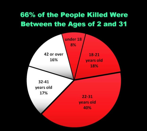 The largest portion of those killed in 2012 (40 percent) were between the ages of 22 to 31, followed by 18 to 21 year olds at 18 percent. Children made up 8 percent of extrajudicially executed black Americans.