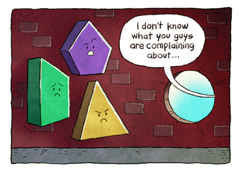 Now imagine that the circle — who previously supported the triangle’s efforts because they are well-rounded (har) and value equality — comes along and sees the construction project. But instead of being happy, they get angry.