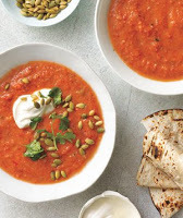 I admit--I have trouble pronouncing the name of the soup. I want to add extra letters in there even when I'm looking right at the word. All that aside, the soup itself is hot, spicy, and utterly worth it. I found the recipe while looking for easy summer recipes, a search I use often. Need to keep the palate pleased and the cooking boredom at bay.