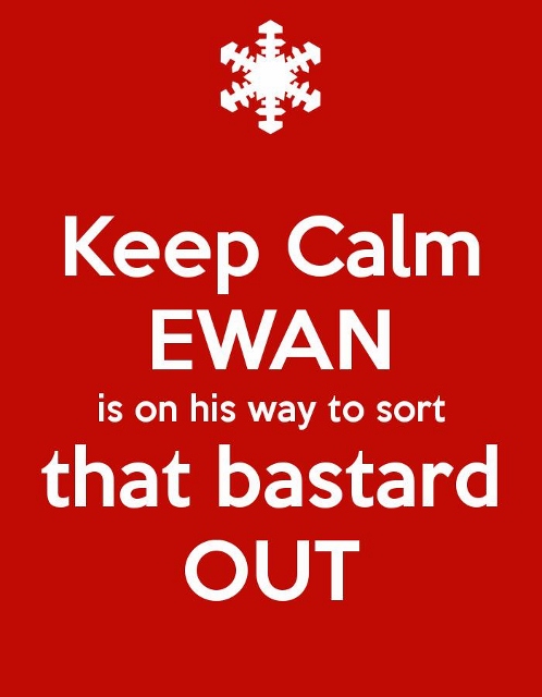 Seeing space on the right, I wing that way, glancing back at Ewan who's already marching to Lloyd while doing the crooked finger beckon. I met Lloyd at lunch and rather like him. He looks like a smithy, not a chef.