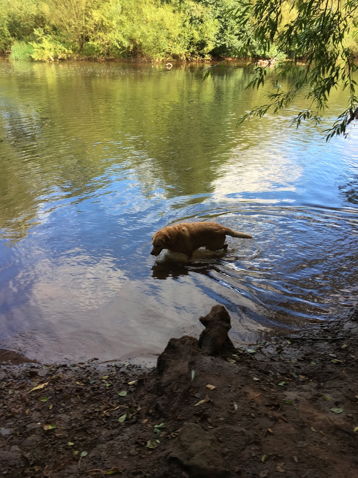 Here's a picture of the man in my life, Dex, enjoying a walk down by the River Wye, without taking him out daily during the crisis, I think I would have lost my mind. :-)