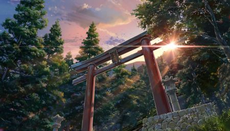 Otra diferencia evidente es que el sintoísmo es un elemento mucho más prevalente en la novela. A lo largo del proceso de producción de la película, la subtrama romántica debió de ir cobrando peso, en detrimento de las sublecturas en favor de la recuperación de los rituales sintoístas (aunque permanece de esa visión original el elemento del lazo rojo que une a los protagonistas, porque quizás gracias a la fuerza iconográfica de las imágenes, encuentra en el medio audiovisual el vehículo perfecto para expresarse).